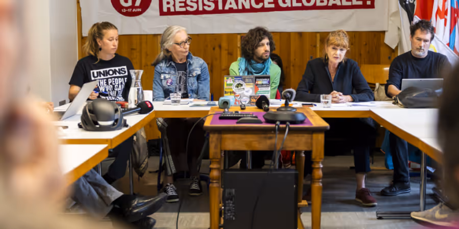 «Die Ankündigung eines NoG7 in Genf hat in Europa grosse Beachtung gefunden», sagte Françoise Nyffeler, Mitglied der „Grève féministe“, im Namen der Koalition am Dienstag vor der Presse in Genf und fügte hinzu: «Wir hoffen auf sehr, sehr viele Teilnehmerinnen und Teilnehmer und werden alles tun, damit dies auch der Fall sein wird.»