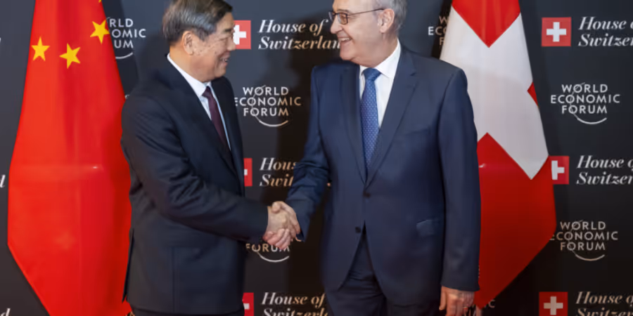 Bundespräsident Guy Parmelin will die Beziehungen zu China pflegen und ausbauen. Er traf sich am Dienstagvormittag mit dem chinesischen Vize-Premierminister He Lifeng in Davos am Rande des WEF.