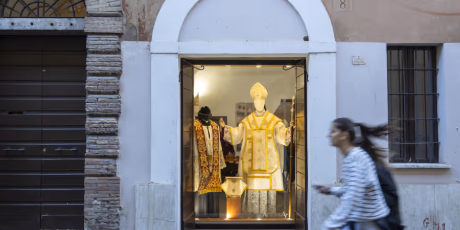 In einem kleinen Laden für Priesterbedarf unweit des Vatikans ist der Bischofshut für Papst Franziskus' Bestattung massgefertigt worden. Im Gespräch mit der Nachrichtenagentur Keystone-SDA offenbart ein langjähriger Mitarbeiter die Vorlieben seiner Klientel.