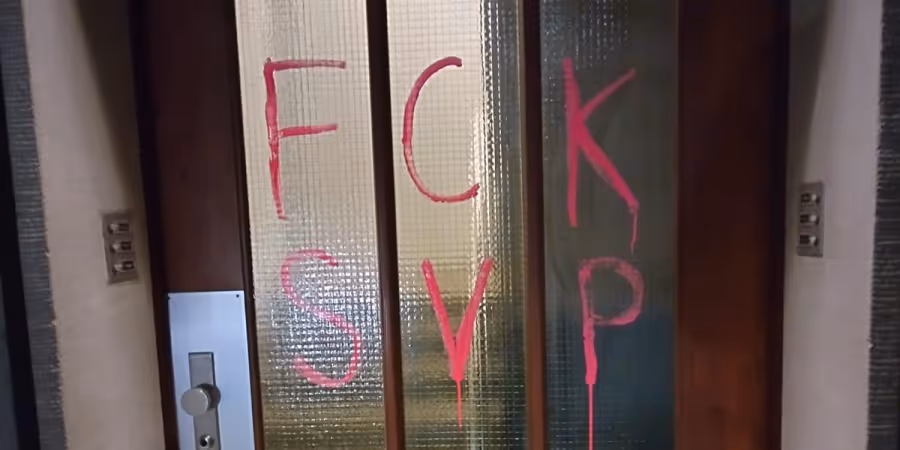 Unbekannte haben laut der SVP in der Stadt Zürich die Eingänge der Wohnhäuser von Exponenten der Partei mit Parolen beschmiert. Die Betroffenen haben den Angaben zufolge Strafanzeige eingereicht.
