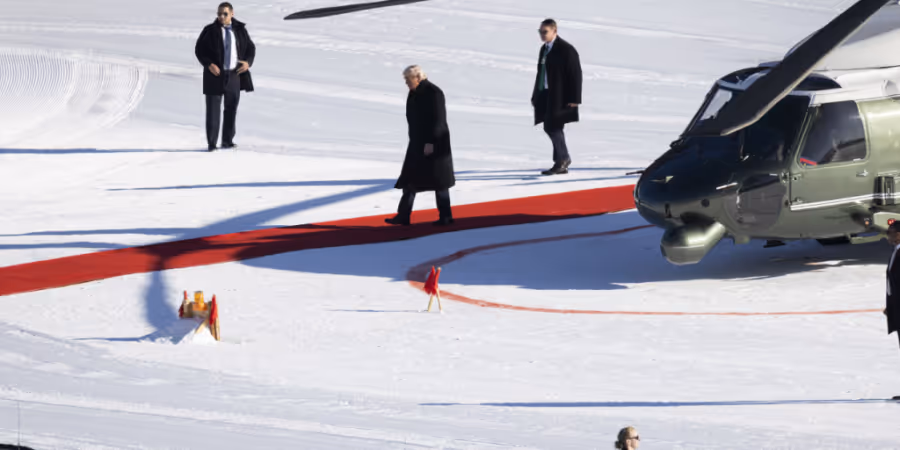 US-Präsident Donald Trump ist in Davos angekommen. Sein Konvoi aus acht Helikoptern setzte am Mittwoch um 14 Uhr im Minutentakt auf dem Boden auf. In den Schnee stehen musste Trump nicht: Davos rollte ihm den roten Teppich aus.