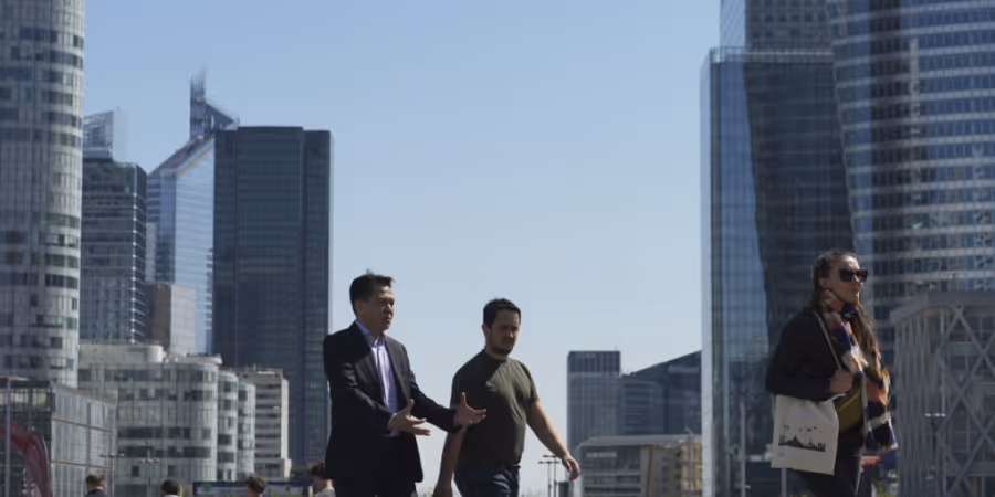 ARCHIV - Menschen schlendern durch das Geschäftsviertel La Defense außerhalb von Paris. Das hoch verschuldete Frankreich erhält nach monatelangem Ringen endlich einen Haushalt für d... - Keystone/AP/Thibault Camus