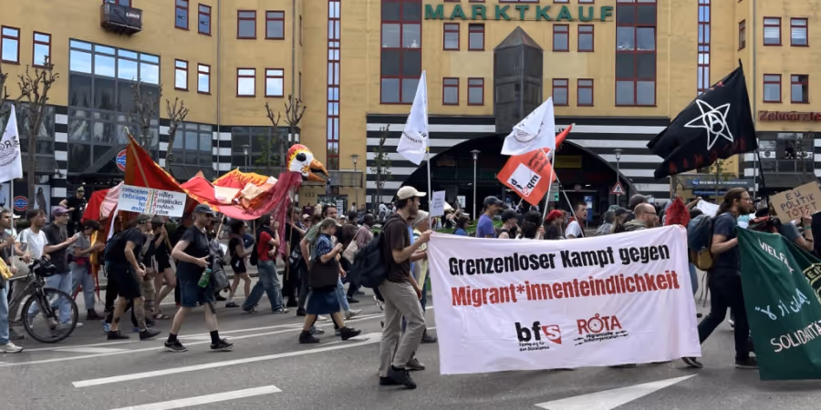 «Jeder Mensch hat das Recht auf ein gutes Leben» und «Solidarität statt Stacheldraht», stand auf Transparenten geschrieben. Und «Alle zusammen gegen den Rassismus», skandierten die Demonstrantinnen und Demonstranten, wie eine Reporterin der Nachrichtenagentur im Rheinpark in Weil am Rhein beobachtete.