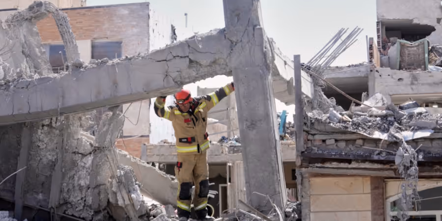 Nach einem iranischen Raketenangriff wurde in Zentralisrael laut israelischem Rettungsdienst ein älterer Mann bewusstlos und in kritischem Zustand an einer Einschlagstelle gefunden. Er sei wenig später aufgrund seiner schweren Verletzungen gestorben. Ausserdem habe es mehrere Leichtverletzte gegeben.