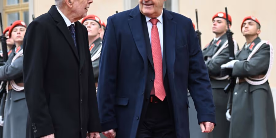Die erste Auslandsreise von Bundespräsident Guy Parmelin hat diesen traditionsgemäss in die Wiener Hofburg geführt. Dort wurde er am Donnerstag von seinem österreichischen Amtskollegen Alexander Van der Bellen empfangen.