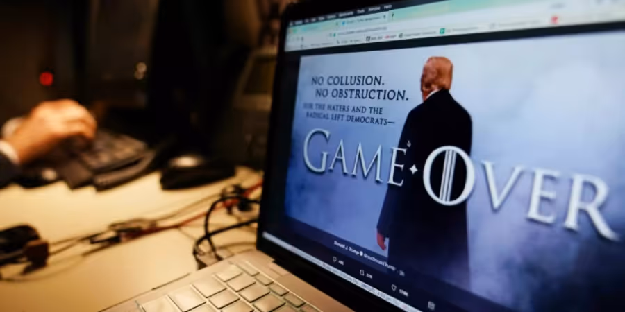 Trump sagte nach der Veröffentlichung lächelnd, er habe einen «guten Tag». Der Mueller-Bericht zeige, dass es weder illegale Absprachen mit Russland während des US-Präsidentschaftswahlkampfs noch Justizbehinderung geben habe, sagte der Präsident. Bei Twitter veröffentlichte er eine triumphierende Fotomontage, die im Stil auf die Fantasy-Fernsehserie «Game of Thrones» anspielte. «Das Spiel ist vorbei» steht gross auf dem Bild, das den Präsidenten mit dem Rücken zum Betrachter und vor dichten Nebelschwaden zeigt.
