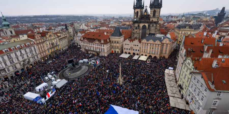Zehntausende Menschen sind in Tschechien auf die Strasse gegangen, um sich demonstrativ hinter den liberalen Präsidenten Petr Pavel zu stellen. Sie folgten einem Aufruf der Initiative «Millionen Augenblicke für Demokratie» und versammelten sich am Sonntag auf gleich zwei grossen Plätzen im Stadtzentrum von Prag.