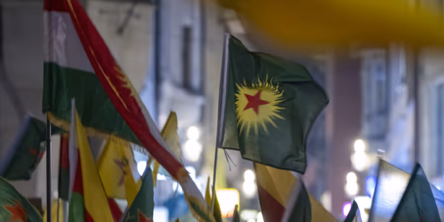 Frauen, Männer und Kinder versammelten sich, schwangen kurdische Fahnen und stimmten Sprechchöre an, wie ein Reporter der Nachrichtenagentur Keystone-SDA vor Ort beobachtete.