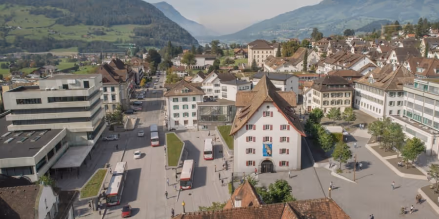Die umgebaute Busstation «Schwyz Zentrum» wird nach Angaben der Gemeinde neu über acht Haltekanten und begrünte Perrondächer verfügen. Auch wird der neue Bushof im Gegensatz zum alten behindertengerecht sein.