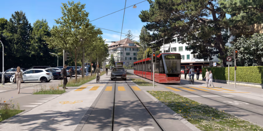 Das Projekt sieht abgesetzte Velowege und eine verbesserte Situation für den Fussverkehr vor. Um diesen Platz zu schaffen, soll sich das Tram in Stadtrichtung den Raum mit dem Motorverkehr teilen. Die Kapazitäten für Tram- und Individualverkehr blieben jedoch mittels Ampelsteuerung erhalten, so die Mitteilung.