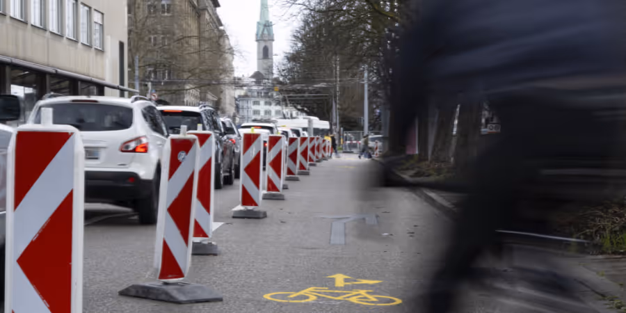 Auslöser für den Zank ist die Baustelle am Hauptbahnhof, die nach Ansicht der Stadt für Velofahrende ein Sicherheitsrisiko darstellt. Deshalb markierte sie im Bereich Neumühlequai/Walchestrasse eine «dringliche und befristete Verkehrsanpassung», wie die Stadt es ausdrückt, sprich einen Velostreifen.