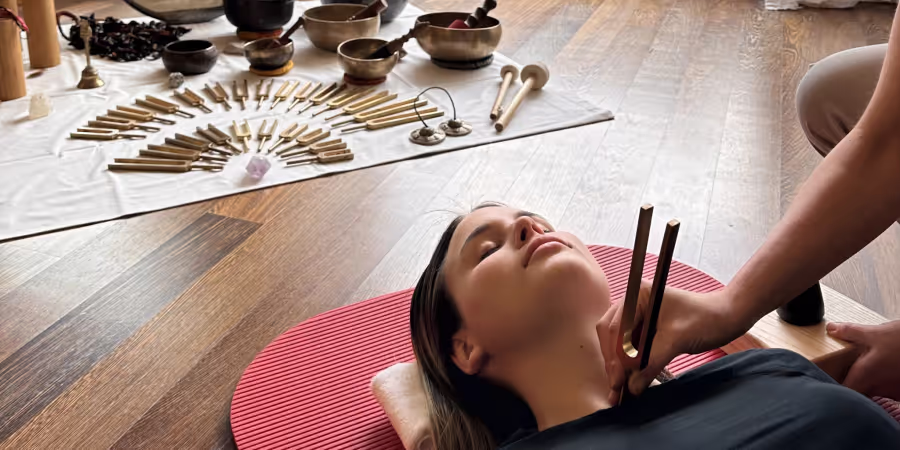 Sound Healing, oder auch Heilung durch Klang, nutzt Klänge und Schwingungen, um körperliches und emotionales Wohlbefinden sowie ein harmonisches, inneres Gleichgewicht zu fördern. Im «Le Grand Bellevue» werden die Therapiestunden von der erfahrenen Klangtherapeutin Kasia angeleitet.