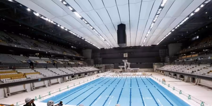 Der Bau des Aquatics Center für die Schwimm-Wettbewerbe sei Ende Februar abgeschlossen worden und soll nun am 22. März eingeweiht werden. Das gaben die Organisatoren der Spiele bekannt.