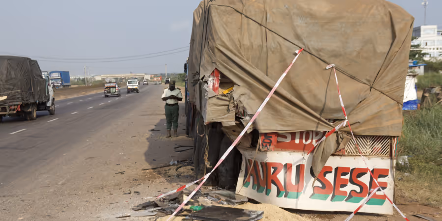 Ein geplatzter Reifen sei Auslöser des Unglücks gewesen, wie die nigerianische Verkehrssicherheitsbehörde TRACE mitteilt.