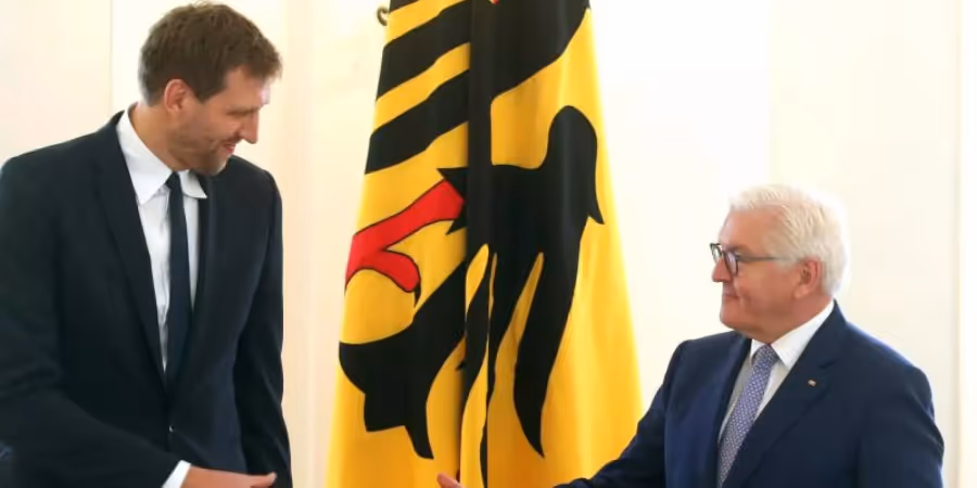 «Schon früh in seiner Profikarriere war sich Dirk Nowitzki seiner privilegierten Situation bewusst», hiess es bei der Auszeichnung. Steinmeier würdigte Nowitzki als «Vorbild». Der gebürtige Würzburger ist seit vielen Jahren als Unicef-Botschafter und in zwei Stiftungen zur Unterstützung von Kindern im Einsatz.