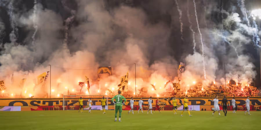Die Fans von YB zündeten während des Spiels gegen den FC Aarau Pyrotechnik im Stadion Brügglifeld. Nachher kam es zu Ausschreitungen in der Stadt.