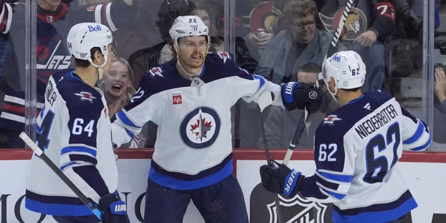 Klarer Sieg für Nino Niederreiter und Winnipeg in der NHL: Im Duell mit den «Swiss Devils» setzt sich der Bündner mit 6:1 durch.