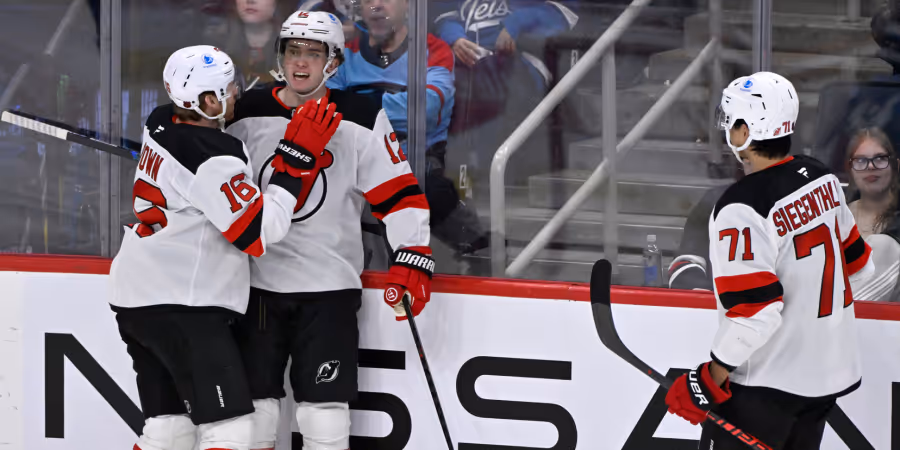 Aus dem Schweizer Trio Hischier/Meier/Siegenthaler ist es ausnahmsweise der Verteidiger, der einen Scorerpunkt bucht: Jonas Siegenthaler assistiert beim zwischenzeitlichen Führungstor von Dawson Mercer.
