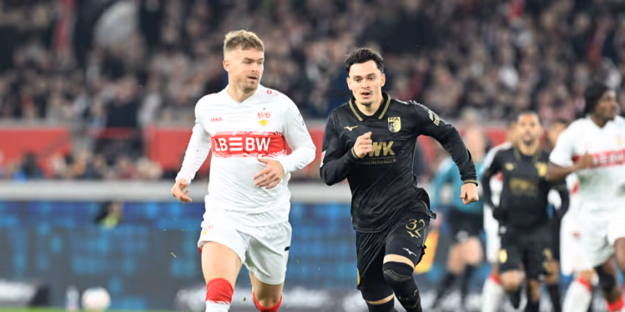 Die Partie für den FC Augsburg in Stuttgart beginnt optimal: Fabian Rieder bringt die Gäste in der achten Minute in Führung. Allerdings gleichen die Schwaben wenig später durch einen Mittelstädt-Penalty aus.