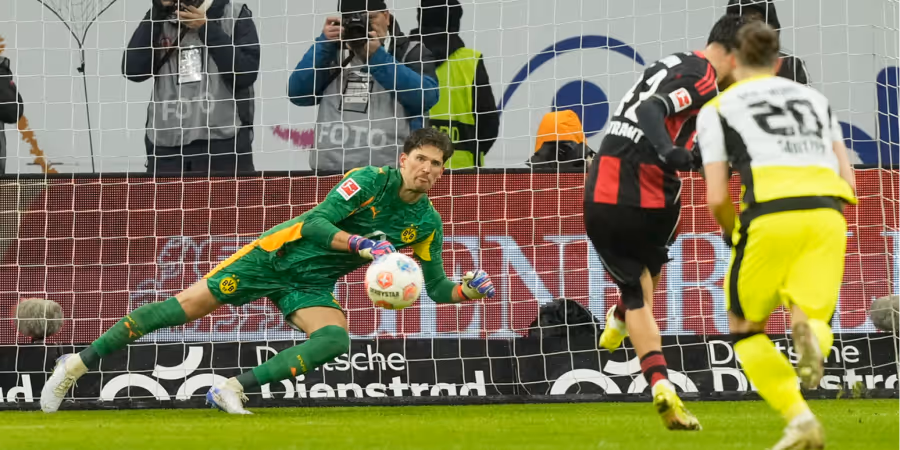 Can Uzun (22) verwertet in der 22. Minute einen Elfmeter (den Stürmer Guirassy verschuldet) und schickt Gregor Kobel in die falsche Ecke.