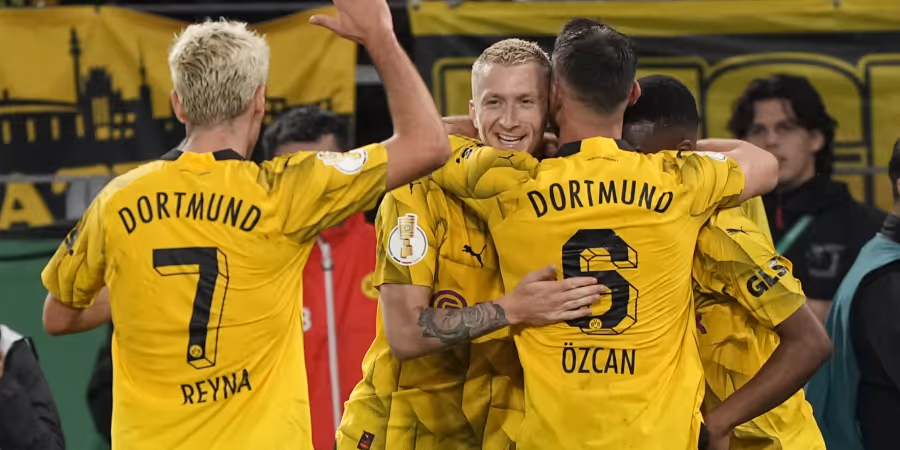 Borussia Dortmund zog im Duell zweier Bundesligisten gegen Hoffenheim dank eines Treffers von Routinier Marco Reus in die Achtelfinals ein. Das Team von Gregor Kobel ist seit 26 Heimspielen ungeschlagen. Gute Nachrichten vor dem Duell mit Bayern München: Kobel, am Wochenende noch angeschlagen, spielte gegen Hoffenheim durch.
