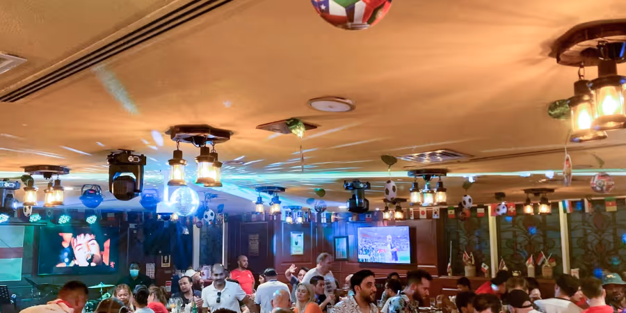 Im Red Lion in Katars Hauptstadt befinden sich kaum Einheimische. Es sind Menschen in Trikots von England, Brasilien, Wales oder Spanien, alles Fans, die zur Weltmeisterschaft angereist sind. Das Red Lion scheint für sie eine Art Zufluchtsort, wo sie das ausleben können, was sie aus ihrer Heimat kennen, in Katar aber nicht für möglich gehalten hatten. WM-Stimmung werde bei der insbesondere in Deutschland wegen der Menschenrechtsverletzungen höchst umstrittenen Endrunde nicht aufkommen, das war der Tenor. Ist das so?
