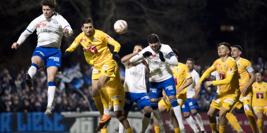 In der ersten Halbzeit ist er Underdog, der erstmals auffällig wird. Doch FCL-Goalie Loretz ist beim Eckball in der siebten Minute zur Stelle. Und auch der FC Luzern hat die erste Möglichkeit nach einem Corner, Knezevic köpfelt aber über das Tor.