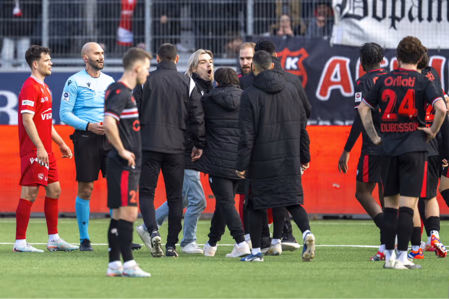 Bei den Sittenern drehen am Ende die Sicherungen durch. Kein Wunder, pfeift Schiri Drmic die Partie trotz eines bevorstehenden Eckballs der Gäste ab. Damit nimmt er ihnen die letzte Chance auf den Ausgleich.