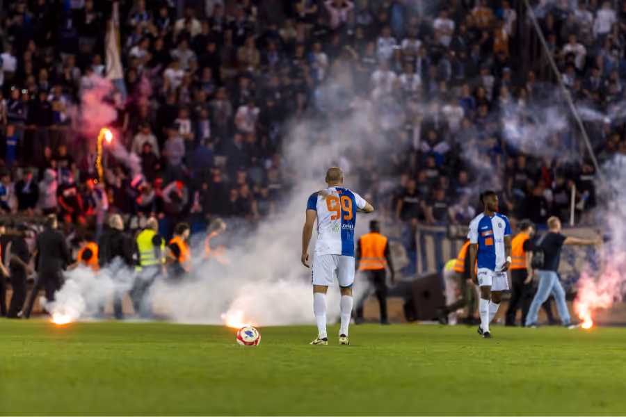 Einige GC-Chaoten lassen ihrem Frust daraufhin freien Lauf und betreten den Innenraum des Stadions. Es fliegen sogar Pyros.