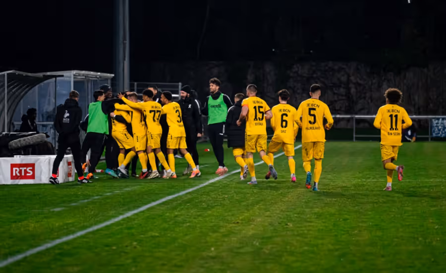Malik Deme hat die Neuenburger in der 83. Minute in Führung geschossen, das Spiel scheint entschieden. Der Auswärtssieg in Nyon? Nur noch Formsache.
