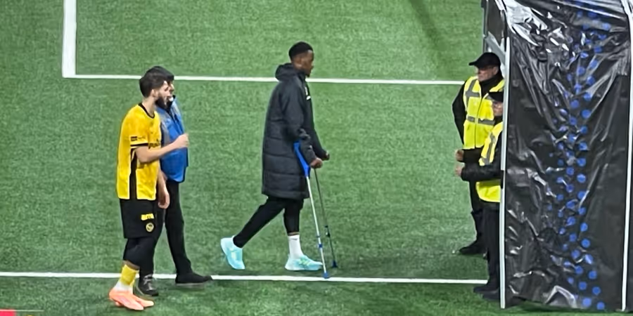 Nach der Partie ist Fernandes im Stadion an Krücken unterwegs (Bild oben). Die Fans befürchten eine schlimmere Verletzung.