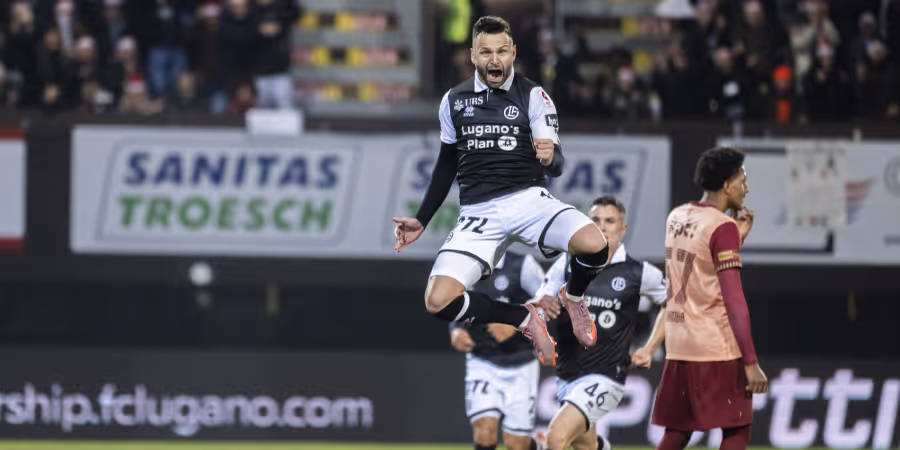 Lugano geht in der dritten Minute durch Kevin Behrens in Führung. Der Deutsche köpft den Ball nach einer schönen Flanke ins Tor.