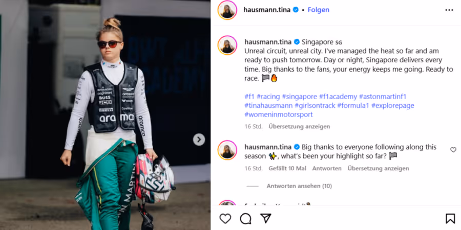 Am Samstag schaffte es Hausmann der F1-Academy nach einem verpatzten Qualifying noch in die Top Ten. Die Schweizerin vom Team Prema wurde beim ersten von zwei Rennen in Singapur Zehnte.