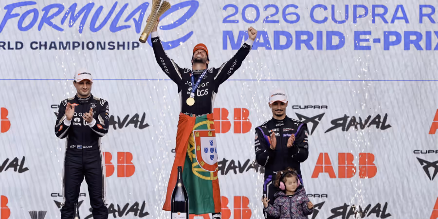 Doppesieg für Jaguar beim Formel-E-Rennen in Madrid: Der Portugiese Antonio Felix da Costa setzt sich vor dem Neuseeländer Mitch Evans durch. Auf dem dritten Platz landet der Deutsche Pascal Wehrlein im Porsche.