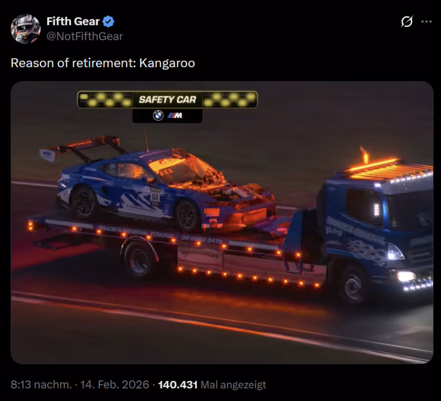 - In Bathurst kommt es zu einem Crash eines GT3-Rennwagens mit einem Känguru.