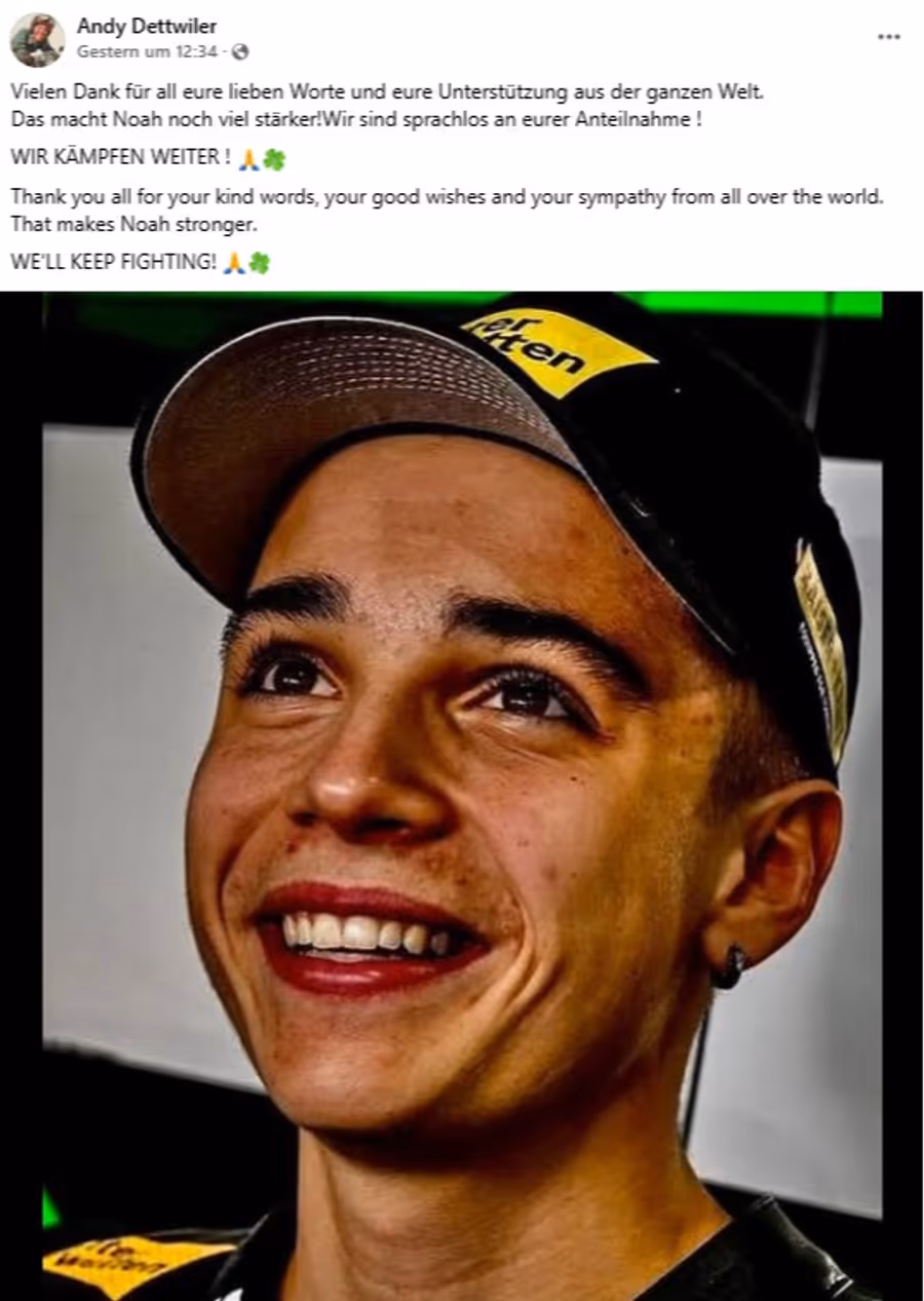 - Andy Dettwiler, der Vater von Moto3-Pilot Noah, bedankt sich für die Anteilnahme.