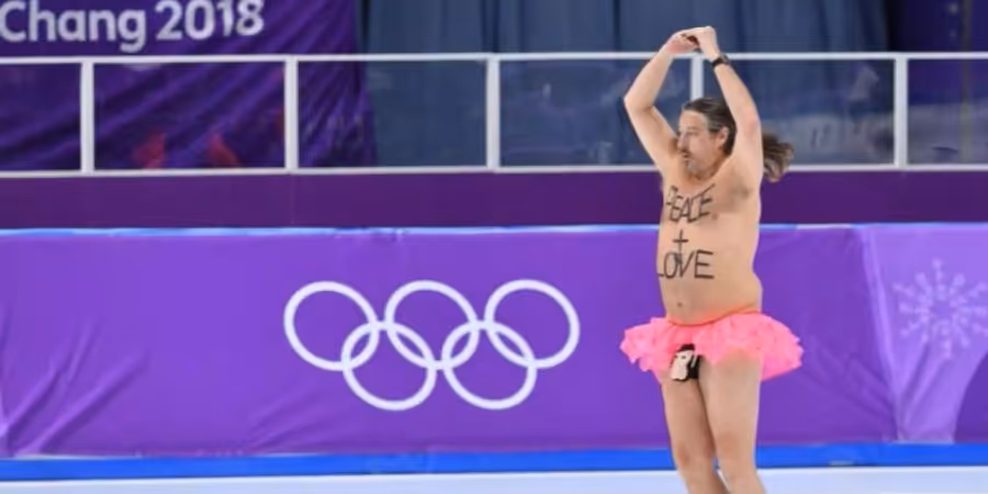 Nun hat er doch noch an den Olympischen Winterspielen in Pyeongchang zugeschlagen. Der weltbekannte Flitzer Mark Roberts sorgte mit seinem (Flitz)-Besuch bei den Eisschnellläufern für Aufregung.
