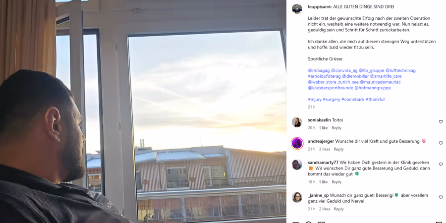 «Aller guten Dinge sind drei», schreibt Samir Leuppi (32) auf Instagram. Der Zürcher Schwinger muss erneut unters Messer.