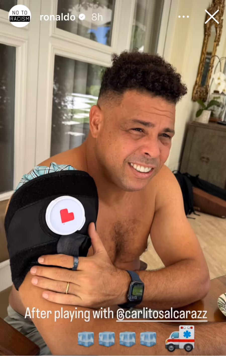 Nach seiner Fussball-Karriere hat Ronaldo Tennis für sich entdeckt. Doch nach einem «Training» mit Carlos Alcaraz ist der 49-Jährige monatelang verletzt.