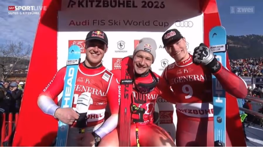 - Die Schweizer feiern einen Doppelsieg beim Super-G von Kitzbühel.