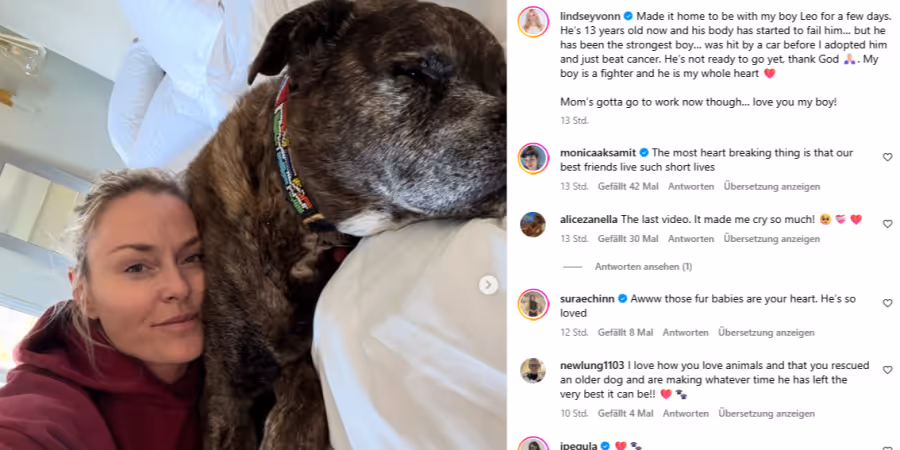 Für sie ist klar: «Seine Kraft gibt mir Kraft. Mein Junge wird alt, aber er hält das durch.» Anfang des Jahres trauerte Vonn bereits um Hündchen Lucy. Nun muss sich die Hunde-Mama um ihren Leo kümmern, der sie schon über ein Jahrzehnt begleitet.