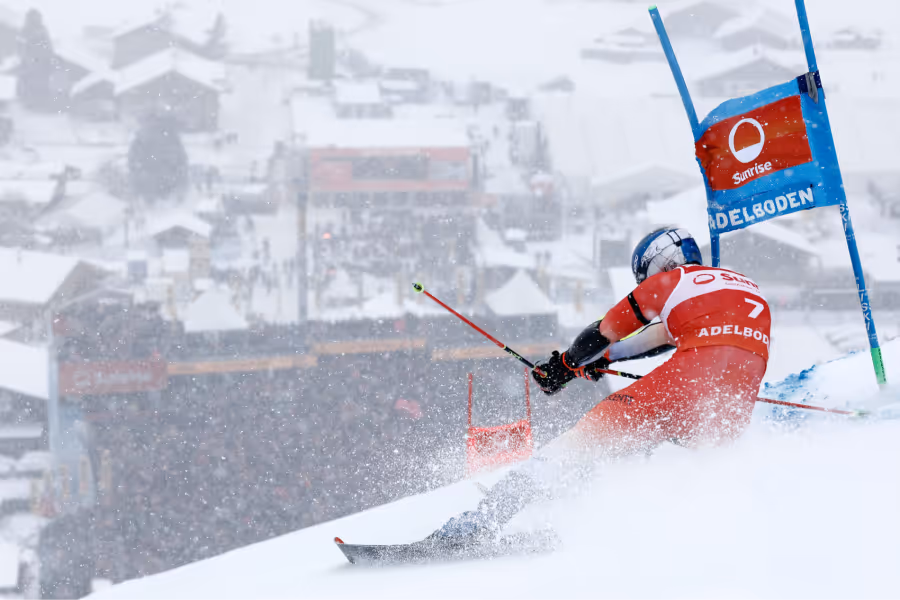 Odermatt geniesst, anders als die meisten seiner Herausforderer, die schwierigen Verhältnisse in Adelboden: Bei starkem Schneefall und böigem Wind kann der Nidwaldner seine Klasse voll ausspielen. Vor allem im ersten Durchgang glänzte er.
