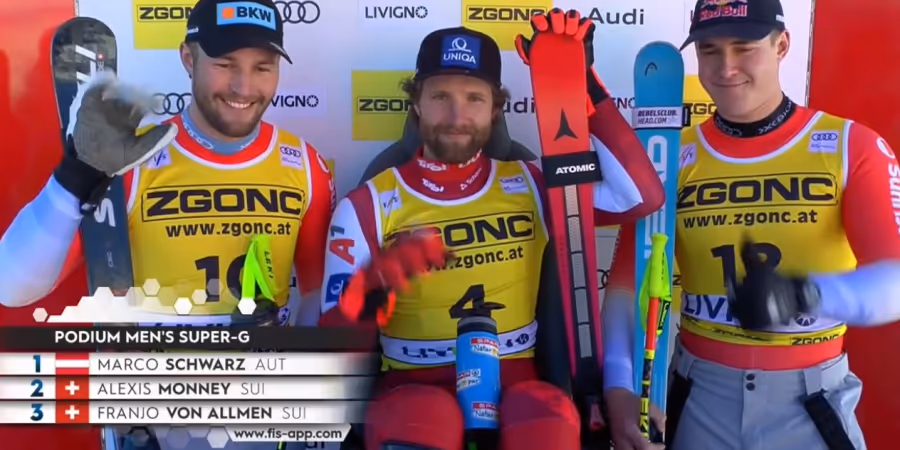 - Marco Schwarz verhindert beim ersten Super-G von Livigno einen Schweizer Dreifachsieg.