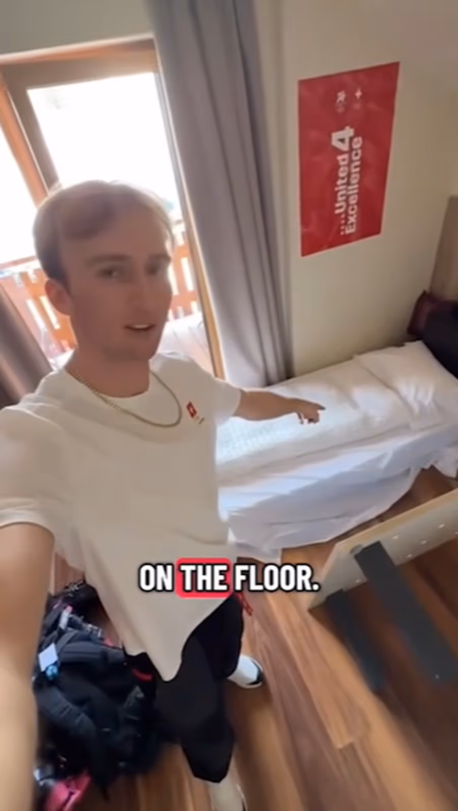 «Ich bin ein ziemlich grosser Typ, deshalb schlafe ich nicht gerne in kleinen Betten», begründet Ragettli im Video. «Aus diesem Grund habe ich mein Bett am Boden – das ist ein bisschen chilliger.»