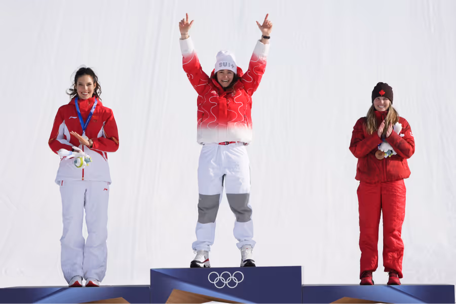 Sie setzt sich vor Eileen Gu (CHN) und Megan Oldham (CAN) durch. Giulia Tanno sichert sich als Sechste ein Olympisches Diplom.