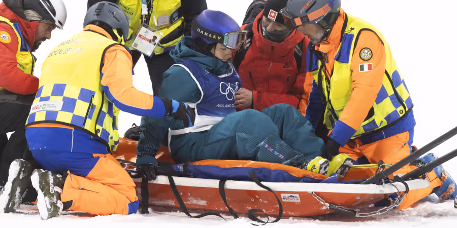 Schlechte Nachrichten aus Livigno: Die grosse Schweizer Big-Air-Medaillenhoffnung Mathilde Gremaud ist beim Probesprung schwer gestürzt. Die Schweizerin musste mit dem Schlitten abtransportiert werden.