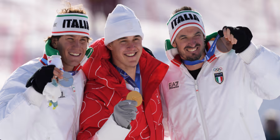 Auf Instagram posiert der Berner Oberländer dann noch mit seiner Medaille – und mit der Konkurrenz: Franzoni und Paris flankieren den neuen Olympiasieger für ein gemeinsames Jubel-Foto.