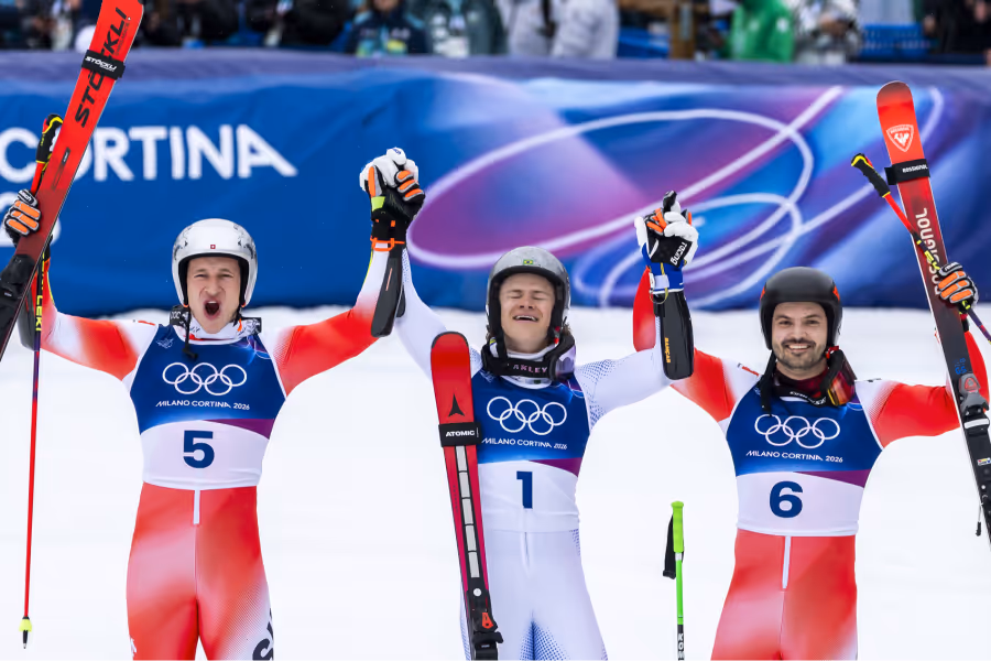Dahinter klassieren sich gleich drei Schweizer: Silber holt sich Marco Odermatt, er verliert 58 Hundertstel auf den Brasilianer. Für Odi ist es bereits die dritte Medaille bei Olympia 2026.
