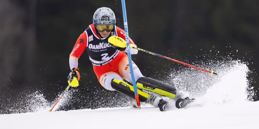 Mit Startnummer 2 setzt Wendy Holdener die erste echte Richtmarke. Der Startfahrerin Katharina Truppe nimmt sie mehr als sieben Zehntel ab. In diesem Direkt-Duell geht es auch um den dritten Endrang im Slalom-Weltcup – Vorteil Holdener.