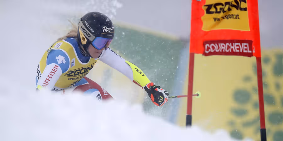 Schon während des Rennens vom Samstag schneit es in Courchevel (F) stark. Der Riesenslalom von heute Sonntag muss nun verschoben werden.